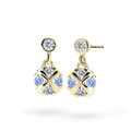 Dětské náušnice ve tvaru klasik se zapínáním typu visací balonek jsou vyrobeny z žlutého 14k zlata a osázené světle modrými kamínky. Zlaté náušnice jsou opatřeny puncovní značkou 585/1000 od státního puncovního úřadu. Tento typ zapínání doporučujeme pro starší slečny ve věku od 5 let. Veškeré rozměry jsou podrobně rozkresleny v podpurné fotografii. Ke každým náušnicím je možné vybrat si i ladící přívěsek s řetízkem.